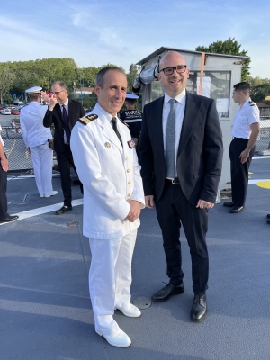 Dans son discours de bienvenu, le CV Laurent Saunois a rappelé l'importance de l'Alliance atlantique en ces instants de tensions mondiales : « Alors que les océans deviennent de plus en plus risqués, notre alliance se renforce ». « C'est toujours un moment très émouvant de voir flotter le drapeau français sur le Bosphore... », a déclaré Olivier Gauvin, Consul général de France, en remerciant les autorités civiles et les militaires turcs pour l'accueil réservé aux navires qui font régulièrement escale en Turquie. Le Consul général a également rendu hommage à Pierre Loti, écrivain et marin qui a durablement marqué par son œuvre et sa vie Istanbul, alors que le 8 juin 2023 marquait le centenaire de sa mort.