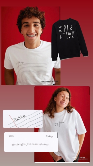 Je voudrais également parler de l'actualité de la mode de notre pays. La marque Mavi a sorti une collection en l'honneur du 100e anniversaire de la République de Turquie. La collection « Mavi100 I Alphabet » a été conçue en collaboration avec les joueurs de l'équipe nationale de water-polo masculine et féminine U17. Le moment emblématique de la révolution des signes où le « Premier Professeur » Atatürk a dessiné le nouvel alphabet sur le tableau noir, a été immortalisé pour le monde de la mode. J'ai beaucoup aimé cette collection et cette idée. Félicitons chaleureusement ceux qui y ont contribué.
