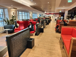 Ici, vous êtes un peu comme chez Ikea. Vous parcourez des allées de parquet et observez les différents espaces, la variété des canapés. Il y a des sièges super size, plus ou moins hauts. Là -bas, de beaux sièges façon Thalys en 1ère agencés en compartiments de train. Une belle illusion qui vous préparera sans doute psychologiquement pour votre voyage.