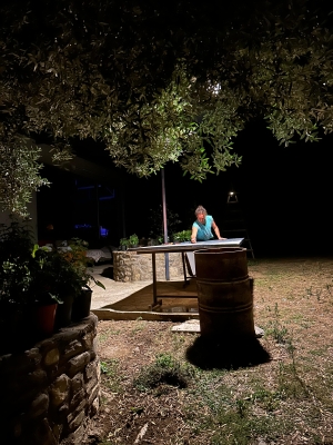 Pour en revenir à notre cher Barış, il possède trois oliveraies différentes dans trois lieux mythologiques. En évoquant l'oliveraie de Gökçeada, connue comme l'île de Poséidon, dieu des mers, il parle du trio raisin/vin, olive et figue de l'île, en tant qu' « enracinement ». Il a installé son atelier de peinture dans l'oliveraie de Palamutbükü, foyer de la civilisation de Cnide datant de 2500 ans. Un deuxième atelier sera créé dans son oliveraie de Kemalpaşa, à 29 km d'Izmir. Il s'agit d'un point de transition entre les villes de Smyrne (Izmir) et de Sardes (Ilydia), théà¢tre de nombreuses colonies dans l'Antiquité.