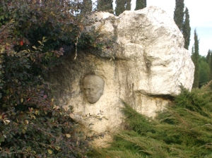 Musée archéologique, a ciselé le visage du chef carthaginois. Cinq plaques de marbre en turc, français, italien, anglais et allemand racontent la vie du légendaire guerrier, en commençant et finissant par les phrases suivantes : « Ce monument a été édifié en mémoire d'Hannibal à l'occasion du centenaire d'Atatürk, comme expression de l'estime de celui-ci pour ce grand chef d'armée... L'érection d'un monument en ce lieu a été demandée pour la première fois par Atatürk en 1934. »