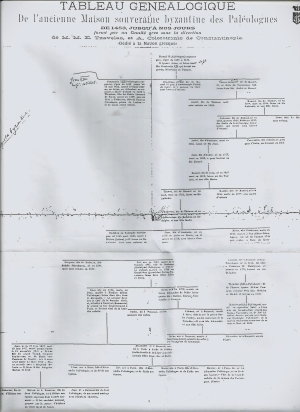 A-t-elle effectué des recherches sur sa généalogie ? Tout d'abord, elle me montre un document réalisé en 1876, qui reconstitue l'arbre généalogique des Paléologues et m'explique le détail des cinq plus récentes générations. Plusieurs personnes de son entourage ont consacré beaucoup de temps à analyser la lignée afin d'établir avec certitude leur filiation. Elle se rendra d'ailleurs en Roumanie en mai 2024, pour découvrir enfin la terre natale d'Alexandre Paléologue et espère y rencontrer certains descendants du frère de ce dernier, Jean, dont le fils, Barbos, fut un moment proposé par la presse d'Athènes au trà´ne royal de Grèce.