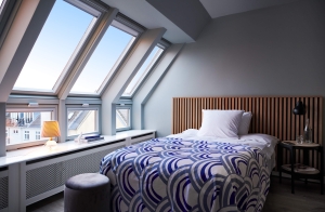 Les chambres et la vue sur la cour intérieure donnent l'impression d'être chez l'habitant. 88 chambres dont des supérieures, suites familiales et junior au décor typiquement scandinave, sobre et épuré avec du mobilier en bois provenant d'artisans locaux. On appréciera notamment la literie des plus confortables et le fameux duvet d'hiver à la fois léger, doux mais qui tient parfaitement chaud. Chaque chambre a son ambiance unique et une touche de romantisme à la parisienne ‒ ce qui explique sans doute le nom de Coco en référence à Coco Chanel.