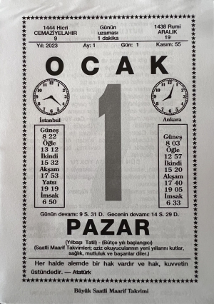 Que dire, sinon : « Bonne année avec Saatli Maarif Takvimi »...