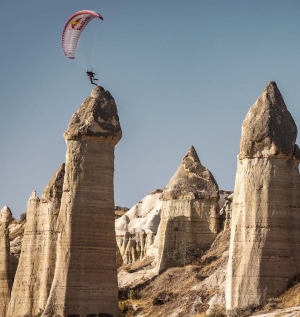 En novembre 2022, Valentin Delluc, adepte confirmé du « ski volant », a défrayé la chronique en Cappadoce, en s'élançant à 2600 mètres de hauteur d'une montgolfière, muni d'un petit parapente favorisant la vitesse. Sa vidéo « Fairy flight », dans laquelle il frà´le, à 140 kilomètres/heure, les cheminées de fées, rebondissant parfois sur leur pointe, a fait le tour du monde. Ces exploits contemporains réalisent en partie le vieux rêve qui anime l'homme depuis Icare, voler comme un oiseau.