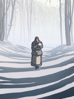Chaque jour, tandis que son mari travaille, cette femme démunie prie Dieu pour qu'il fasse tomber du train une marchandise alimentaire. C’est alors qu’un train passe, et qu’elle entend le cri d’un bébé. Elle se précipite dans la neige et découvre un nourrisson. Elle le ramène chez elle, déterminée à le nourrir et à le réchauffer.