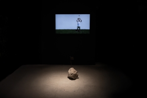 Au centre de l’exposition, un écran capte immédiatement l’attention. Sa lumière vive et bleutée semble s’animer légèrement. En s’approchant, le spectateur comprend : une performance y est projetée. Une femme, vue du dessus, nage sans relâche dans une piscine. Malgré ses efforts incessants, elle semble incapable de sortir d'une couche d'eau qui la recouvre sans cesse. Elle lutte, y met tout son cœur, mais en vain – comme si cette impossibilité de s’échapper ne dépendait pas de son contrôle. Cette performance incarne les structures invisibles et oppressantes qui limitent l'épanouissement des femmes et l'exercice de leur potentiel, et interroge leur capacité à persévérer malgré un cadre contraint et profondément injuste. Sur le mur adjacent, un autre écran affiche, sur fond noir : « Pendant combien de temps pourra-t-il le supporter ? ». Une vidéo se lance alors. On y voit un homme, seul face à la caméra, saisir une roche de ses deux mains et la soulever au-dessus de sa tête. La question prend alors tout son sens : combien de temps tiendra-t-il ? Cette roche symbolise le poids des structures, des normes, des relations qui confinent l’individu dans un rôle parfois insupportable, l’écrasant jusqu’à le submerger. L’homme craque, incapable de tenir plus longtemps, il jette la pierre, fixe la caméra et s’en va. La roche a eu raison de lui et de ses croyances ; il ne résistera plus. En face, une photographie occupe l’autre mur. En bas, une centaine de personnes, vêtues de noir, sont entassées, semblant patienter et faire la queue pour atteindre l'extrémité droite du cadre. Cette fine ligne noire est écrasée par un ciel blanc dominant, dont l'effet est perturbé par un détail : à gauche, une caméra, fixée sur un poteau, est orientée vers cette foule figée. Par ce cliché, le photographe cherche à illustrer, à sa manière, le concept du Panopticon, développé par le philosophe français Michel Foucault, qui postule qu'une surveillance constante incite à l’autodiscipline. À travers cette image, le photographe explore les dynamiques de pouvoir et le contrôle social omniprésent dans les sociétés modernes.