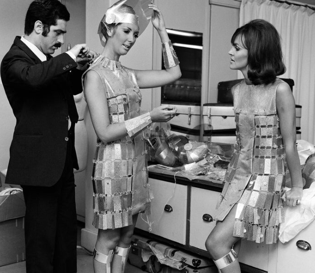 Peu après, le créateur de mode entreprend de concevoir des vêtements à partir de matériaux synthétiques tels que le métal et le plastique, et sa première création est un boléro.