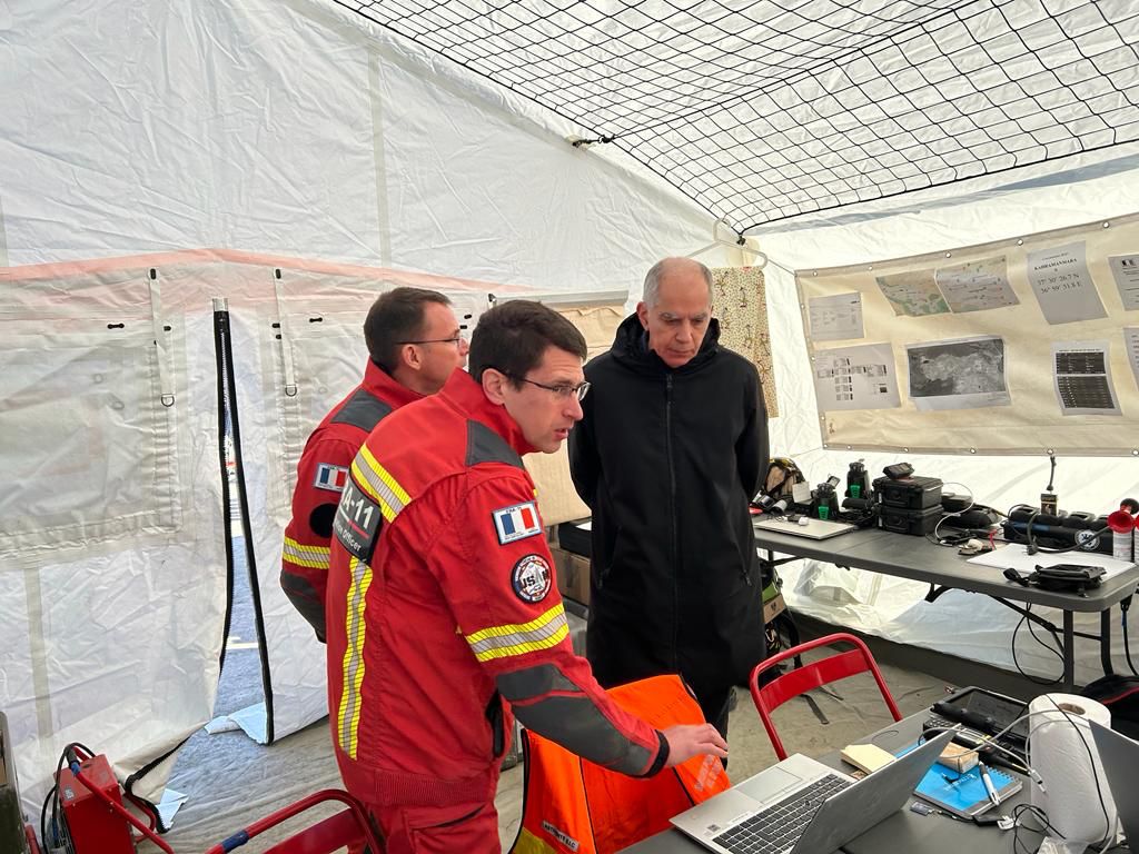Je me suis rendu sur place, notamment à Kahramanmaraş, pour remercier les équipes de secours et pour préparer l'arrivée de notre hà´pital de campagne. Cet hà´pital de campagne constitue la phase 2 de notre aide, s'inscrivant dans la continuité de notre action. Il est installé non loin d'Adıyaman, à Gölbaşı, et compte une équipe de 91 personnes. Il s'agit d'un véritable hà´pital, pas seulement de quelques tentes d'appoint pour essayer d'aider l'hà´pital local. Il comporte des salles d'opération, une unité de maternité, un laboratoire, une pharmacie... Cet hà´pital de haut niveau est d'ailleurs labellisé par l'OMS, et est unique en France.