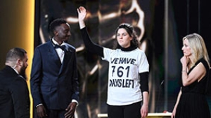 Diffusée sur Canal+ comme chaque année, la cérémonie a été brièvement interrompue par l'irruption d'une militante écologiste sur scène, portant un tee-shirt du collectif d'activistes « Dernière Rénovation » avec le message “We have 761 days left†(« Il nous reste 761 jours »). La diffusion a été interrompue pendant environ une minute, mais la sécurité a rapidement écarté l'activiste avant que la cérémonie des César ne reprenne comme si de rien n'était.